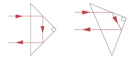 Prismapeilin kulma säädettynä ± 15° ei vaikuta valon suuntaan.