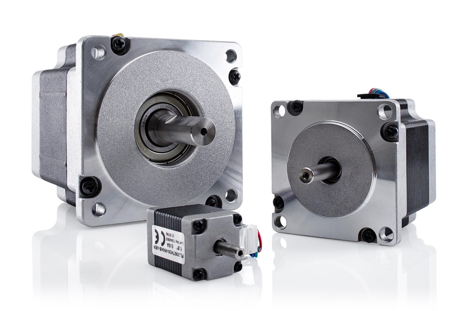Useimmissa malleissa on saatavilla 0,9, 1,2, 1,8 tai 3,6 asteen askelluksella olevat moottorit. Askelmoottorit saatavilla myös vakiona 2-, 3- tai 5-vaiheisena. Monipuolinen valikoimamme pitää sisällään perinteiset askelmoottorit, korkean pitomomentin ja IP65-suojauksella olevat mallit sekä integroidulla liittimellä olevat moottorit. Askelmoottorin asennus on helppoa, koska käyttöakselit ja kiinnityslaipat ovat aina vakiomitoilla, mitä teollisuudessa yleensä käytetään.